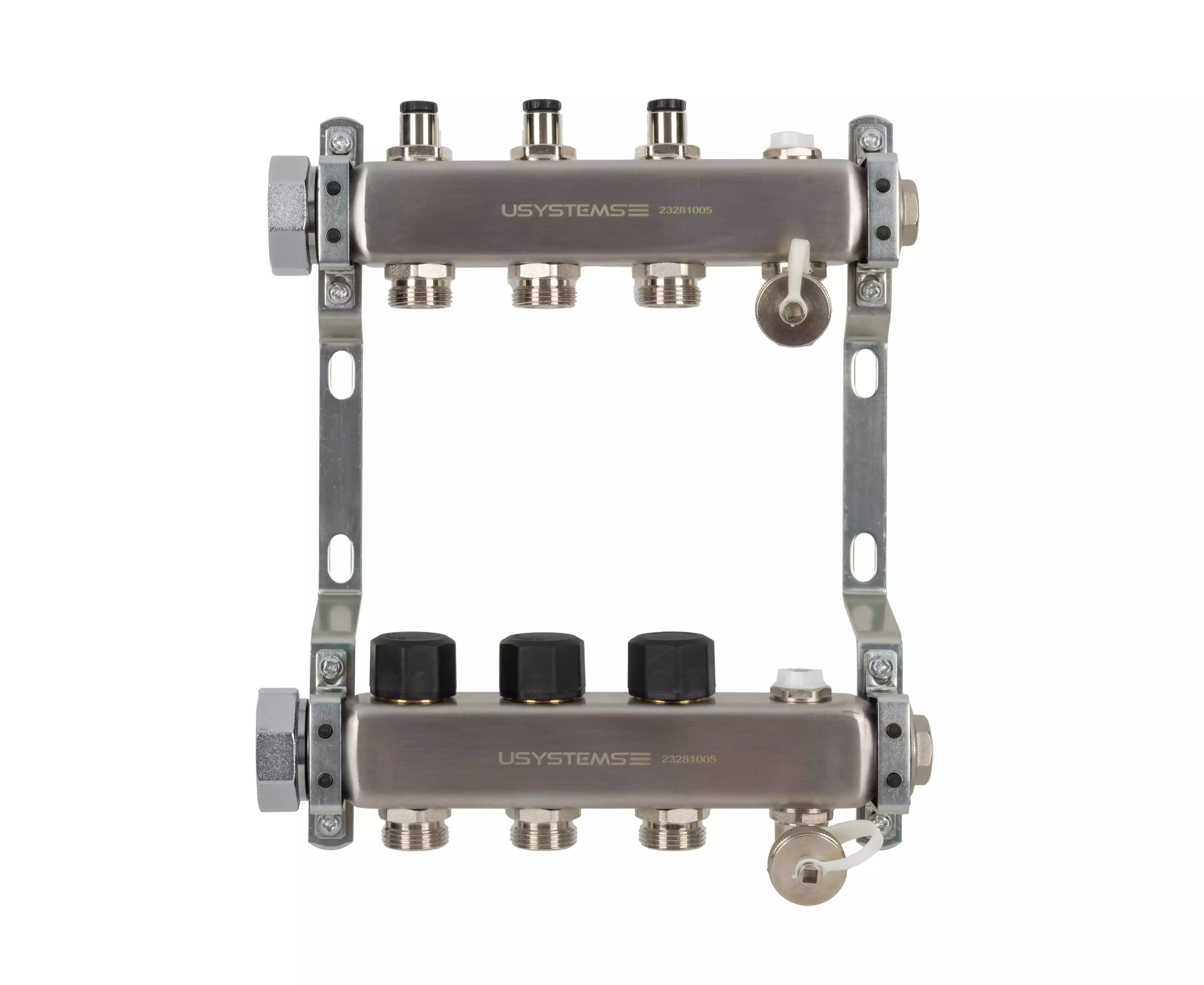 КОЛЛЕКТОР UN 1"" с клапанами, стальной, выходы 3/4"" euro Usystems