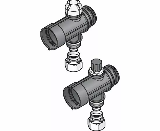 – обратный сегмент с регулировочным клапаном и маховичком, имеющий одиночный выход на петлю и оснащенный резьбовым адаптером для подключения трубы 25 x 2,3 мм.
