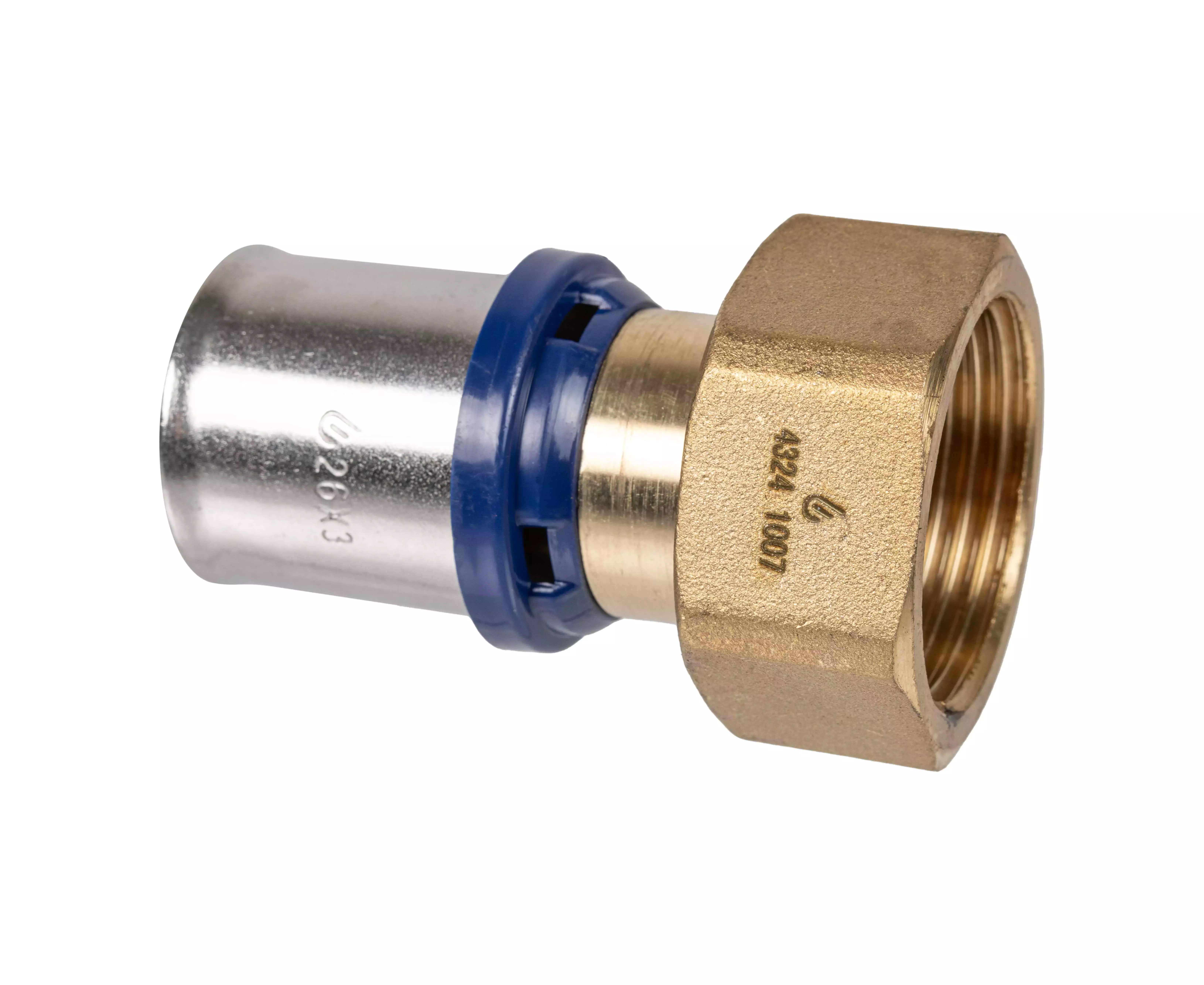 Изготавливаются фитинги из латуни, поставляются с предустановленными пресс-гильзами из нержавеющей стали с контрольными отверстиями. Не требуется снятие фаски благодаря утопленным уплотнительным кольцам из EPDM, имеют функцию защиты от протечки (кроме диаметра 40 мм). Пластмассовые упорные кольца для защиты латуни фитинга от контакта с алюминиевым слоем трубы и для позиционирования клещей инструмента профилей TH и U (26 мм – только TH).