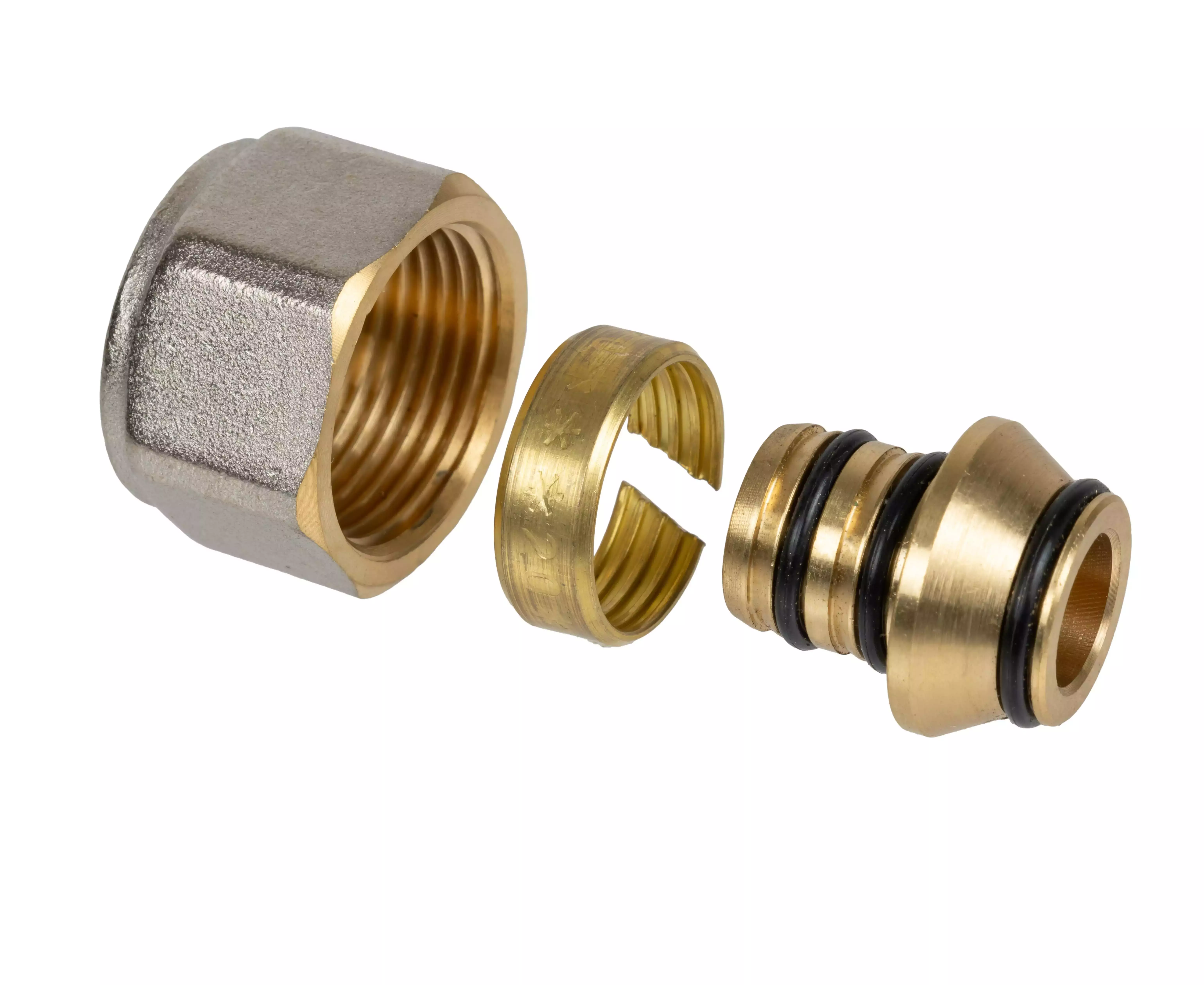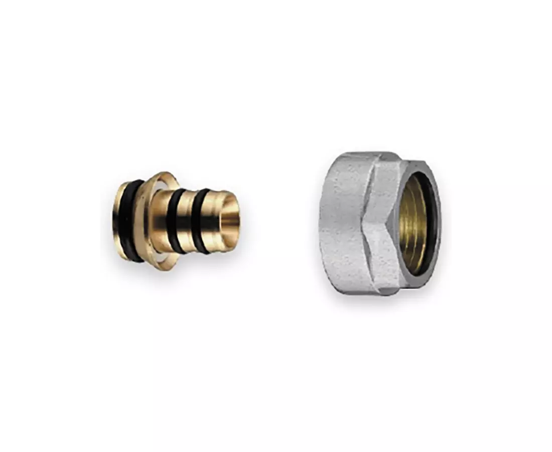 Зажимной адаптер, состоит из штуцера, обжимного кольца и гайки из латуни. Для подключения труб Usystems MLC к коллекторам и радиаторным узлам с наружной резьбой 3/4“НР Евроконус. Внутренняя резьба трубная цилиндрическая G по EN ISO 228-1, ГОСТ 6357. Перед монтажом необходимо снять фаску и откалибровать трубу.
