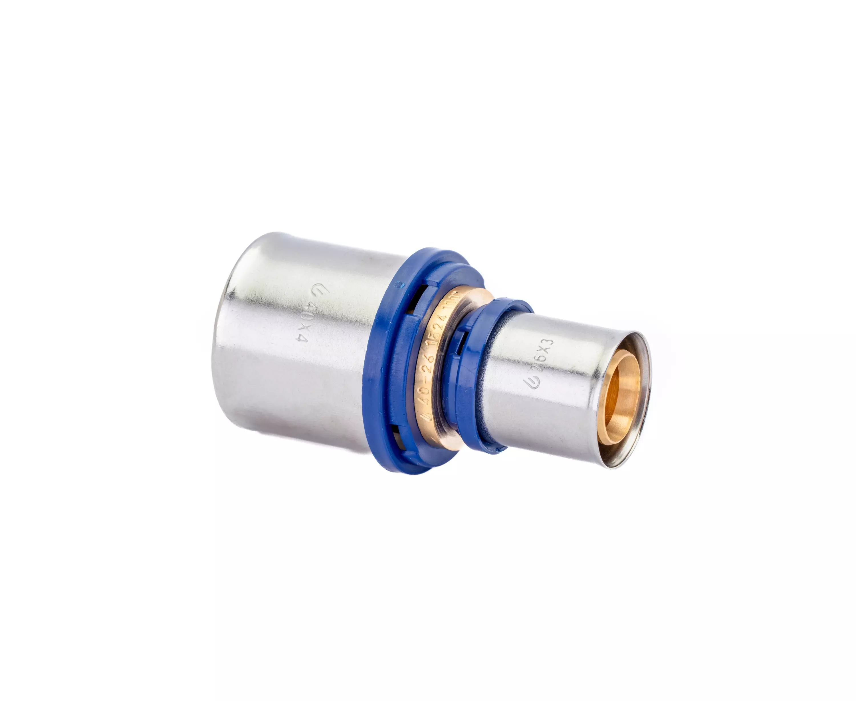 Изготавливаются фитинги из латуни, поставляются с предустановленными пресс-гильзами из нержавеющей стали с контрольными отверстиями. Не требуется снятие фаски благодаря утопленным уплотнительным кольцам из EPDM, имеют функцию защиты от протечки (кроме диаметра 40 мм). Пластмассовые упорные кольца для защиты латуни фитинга от контакта с алюминиевым слоем трубы и для позиционирования клещей инструмента профилей TH и U (26 мм – только TH).