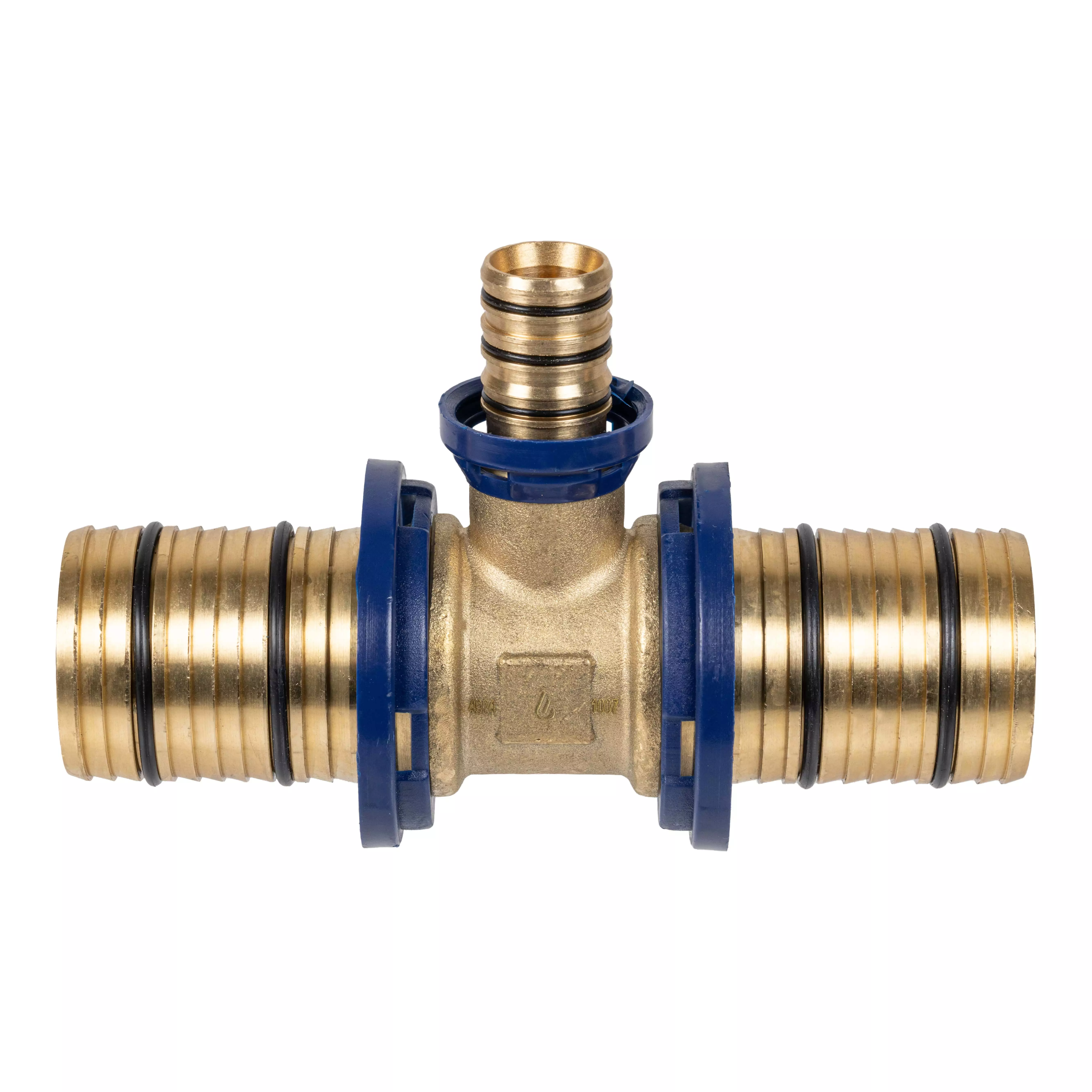 Изготавливаются фитинги из латуни, поставляются с предустановленными пресс-гильзами из нержавеющей стали с контрольными отверстиями. Не требуется снятие фаски благодаря утопленным уплотнительным кольцам из EPDM, имеют функцию защиты от протечки (кроме диаметра 40 мм). Пластмассовые упорные кольца для защиты латуни фитинга от контакта с алюминиевым слоем трубы и для позиционирования клещей инструмента профилей TH и U (26 мм – только TH).