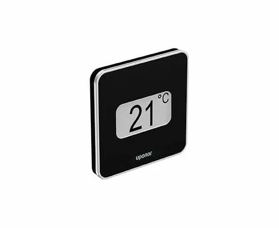 Проводной термостат с двумя встроенными датчиками: температуры и влажности. Передаёт информацию контроллеру. Помимо задания желаемой температуры в помещении, можно также регулировать, например, включение и выключение режима охлаждения. Кроме того можно настроить функцию опционально подключаемого датчика – например, датчик пола, выносной датчик или датчик наружной температуры. Главная особенность термостата в его дизайне: элегантный внешний вид и минимальная толщина позволяют сочетать комфорт в управлении внутренним климатом с привлекательным дизайном внутреннего интерьера помещений.