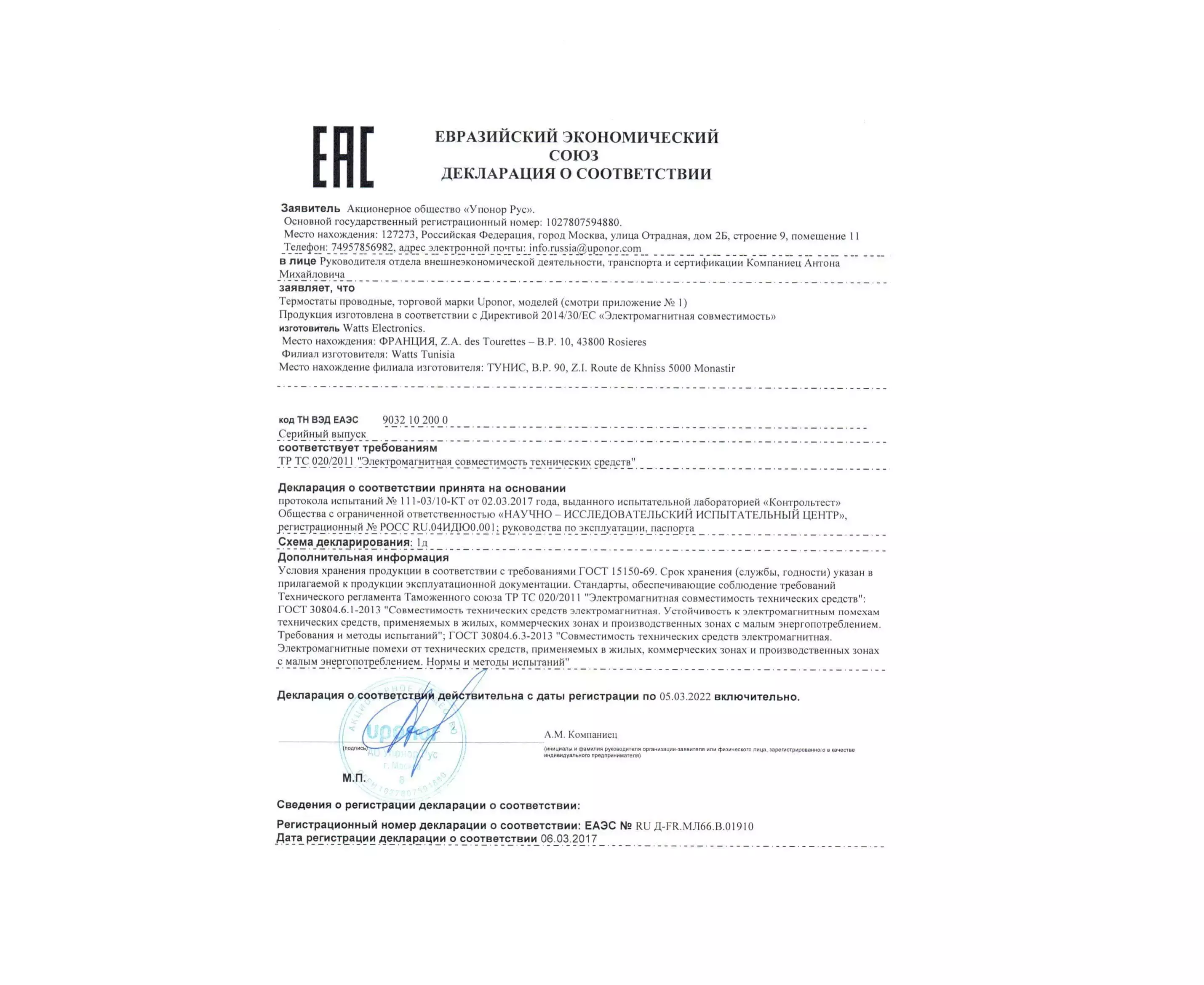 ■ Требование: 4-х жильный кабель кабель Uponor (арт. 1071670)