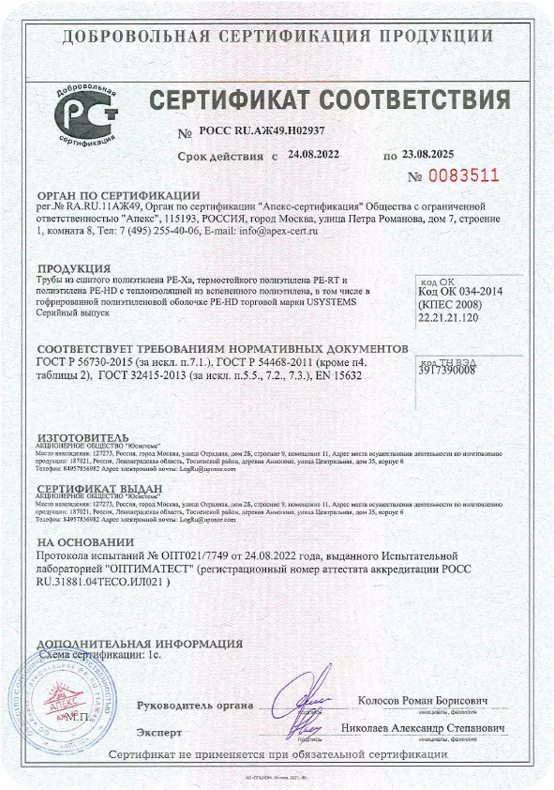 Гибкие теплоизолированные трубы USYSTEMS рекомендовано монтировать на улице при температуре воздуха не ниже -15 °С.